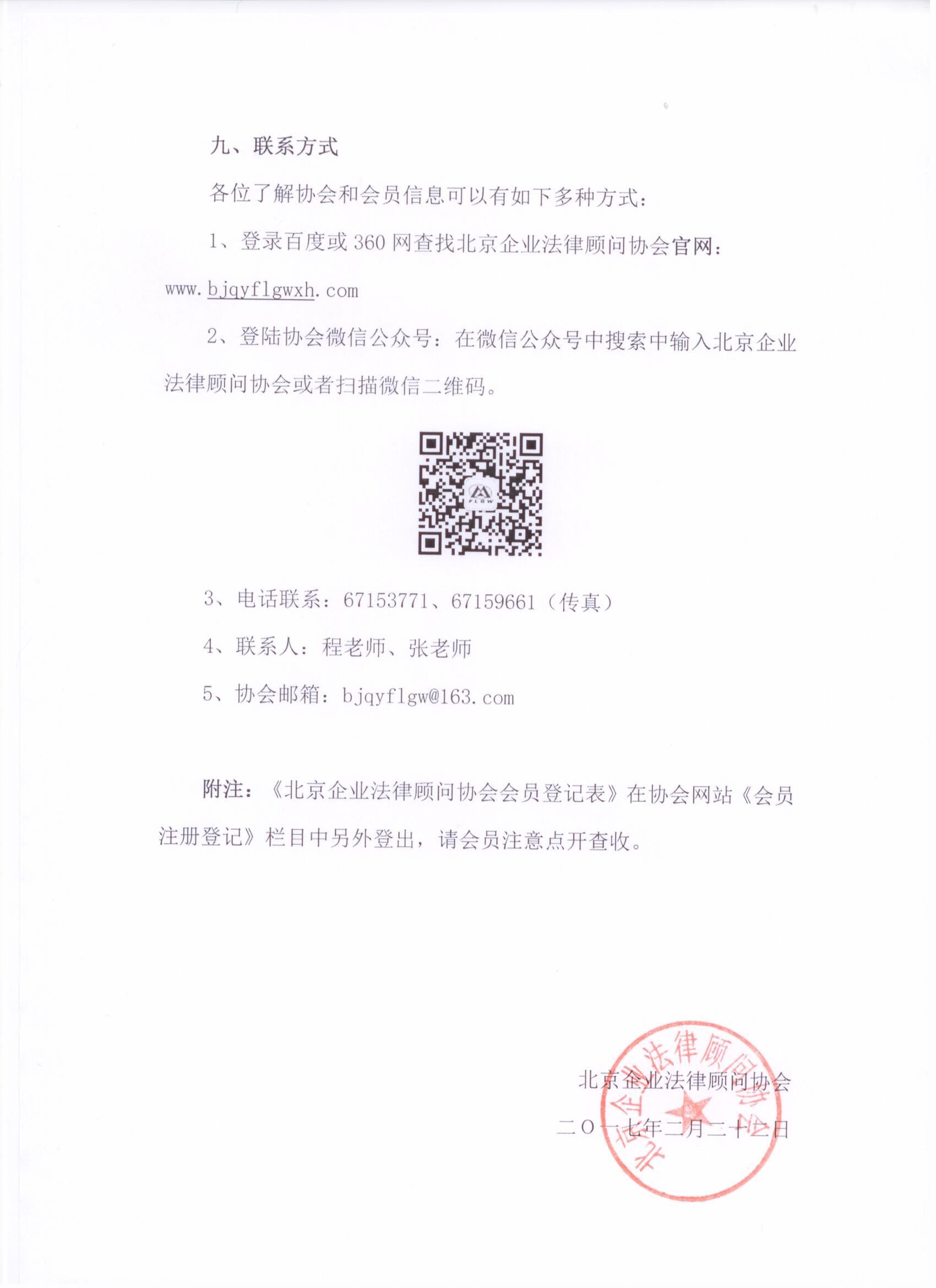 附注:《北京企业法律顾问协会会员登记表》在协会网站《会员注册登记》栏目中另外登出,请会员注意点开查收。