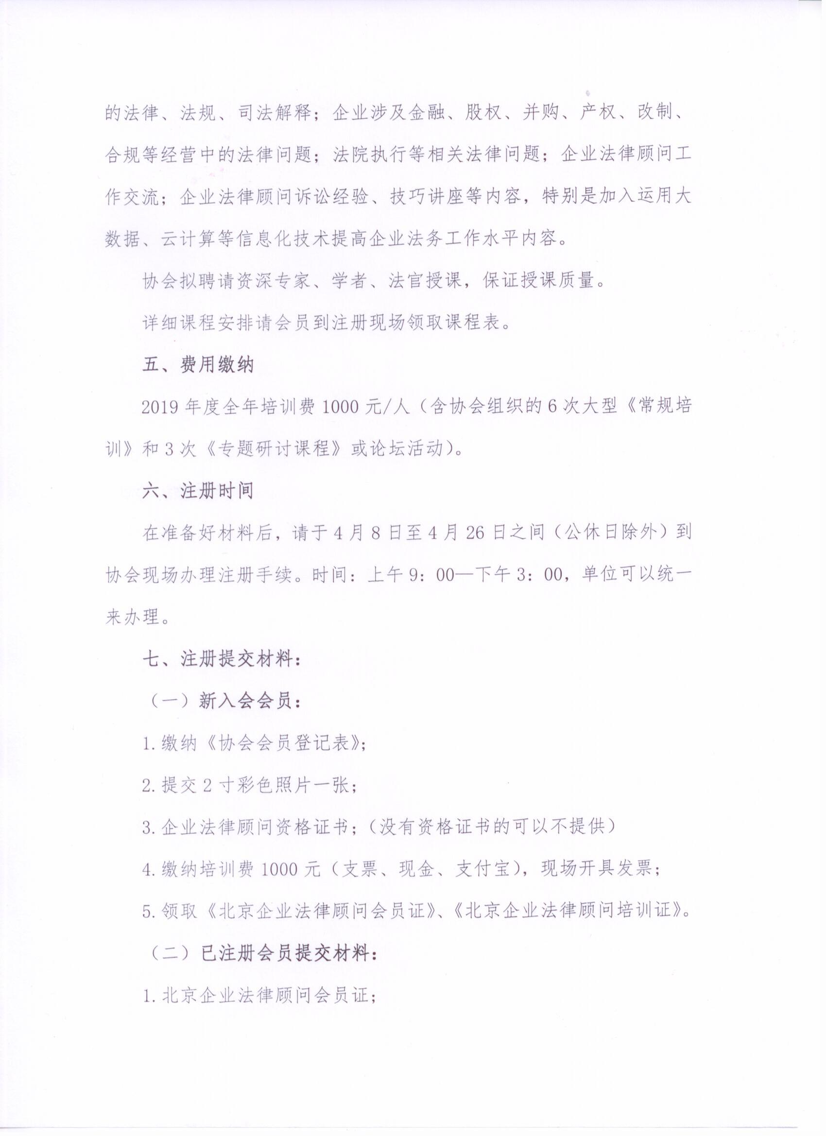 2019年度全年培训费1000元/人(含协会组织的6次大型《常规培训》和3次《专题研讨课程》或论坛活动)。
